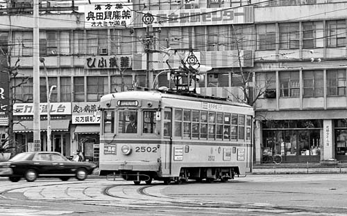 清輝橋線は路線が短いのですぐに戻ってくるためか、この日はこの2502号を多く写しています。柳川電停の安全地帯からの撮影です。柳川